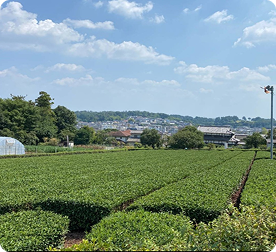 下山口駅から5分の場所に広がる日本三大銘茶「狭山茶」の茶畑です。住宅地の間の坂道を少し登ると緑の絨毯のような茶畑が広がります。天気の良い日には青い空と茶畑の緑のコントラストが美しく、心をリフレッシュさせてくれます。